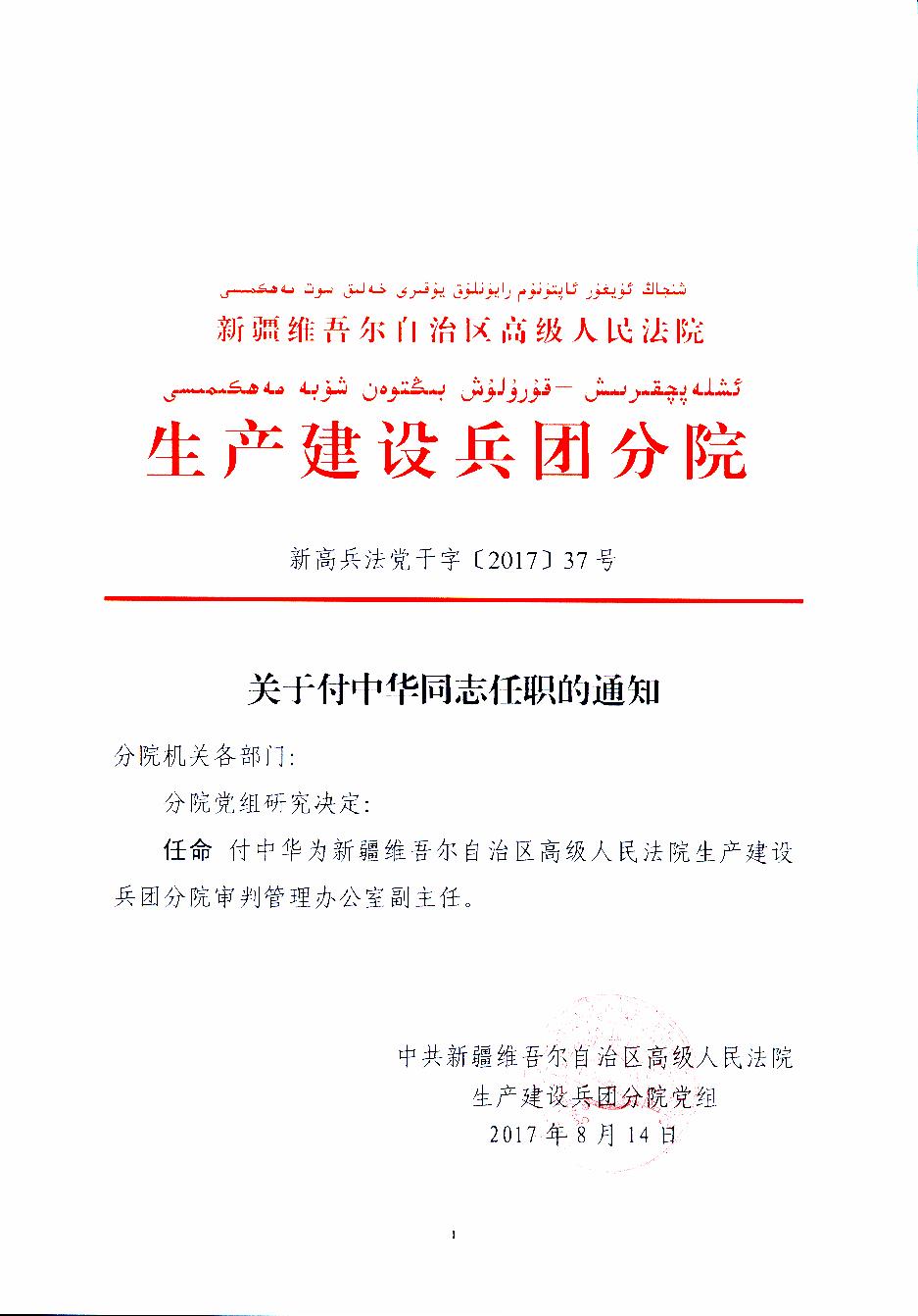 关于付中华同志任职的同志